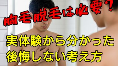 胸毛が濃いことに悩み脱毛を始めた実体験をもとに、胸毛脱毛の必要性や注意点を解説。胸毛だけ脱毛して後悔しないための考え方を、全身脱毛経験者の視点でまとめました。