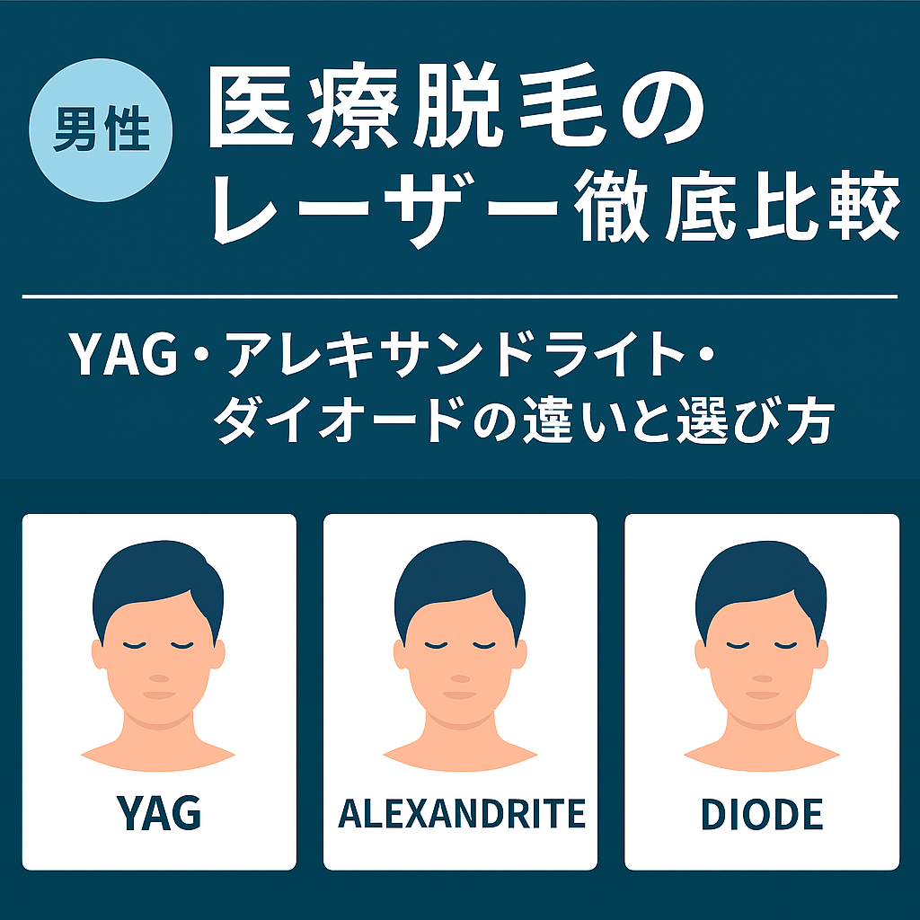 男性の医療脱毛では、目的に応じてレーザーを使い分けることが重要です。肌質や毛質に合ったレーザーを選ぶことで、効果を最大化しつつ痛みを最小限に抑えることができます。