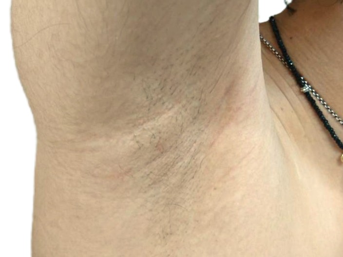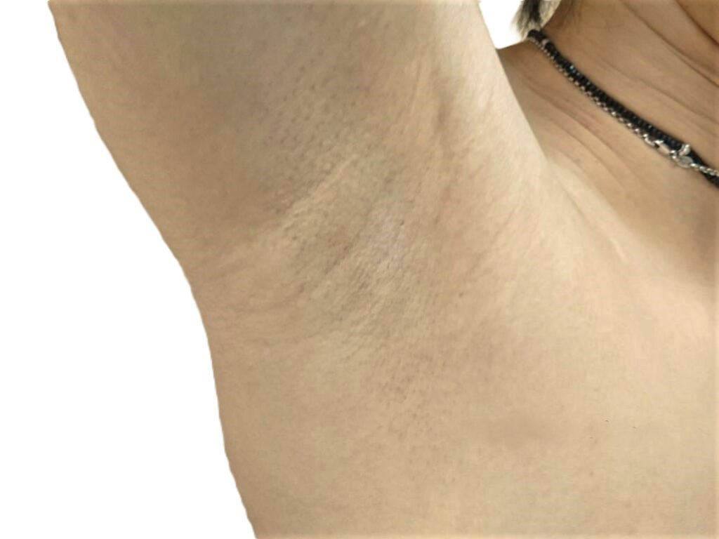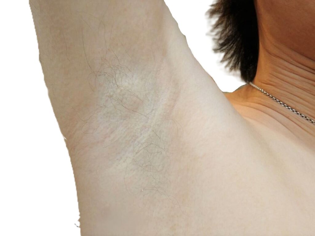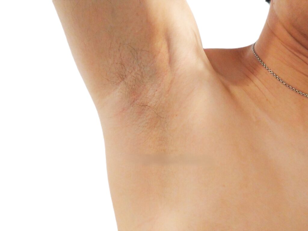 脇毛脱毛は大成功! 施術後はほとんど脇毛が目立たなくなり、遠目からは完全にツルツルに見えるレベルです。