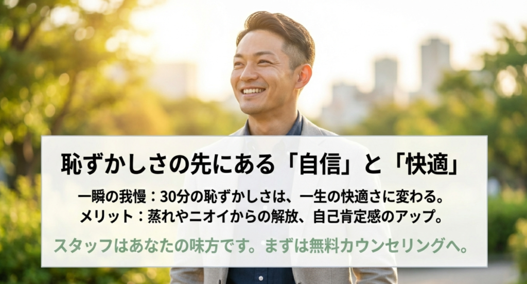 最後になりますが、この記事で一番伝えたかったのは「あなたは一人じゃない」ということです。知恵袋で検索している数えきれないほどの男性が、今この瞬間もあなたと同じ悩みを持っています。そして、それを受け止めるプロのスタッフたちは、毎日何人もの男性のそんな姿を見て、優しくサポートしています。