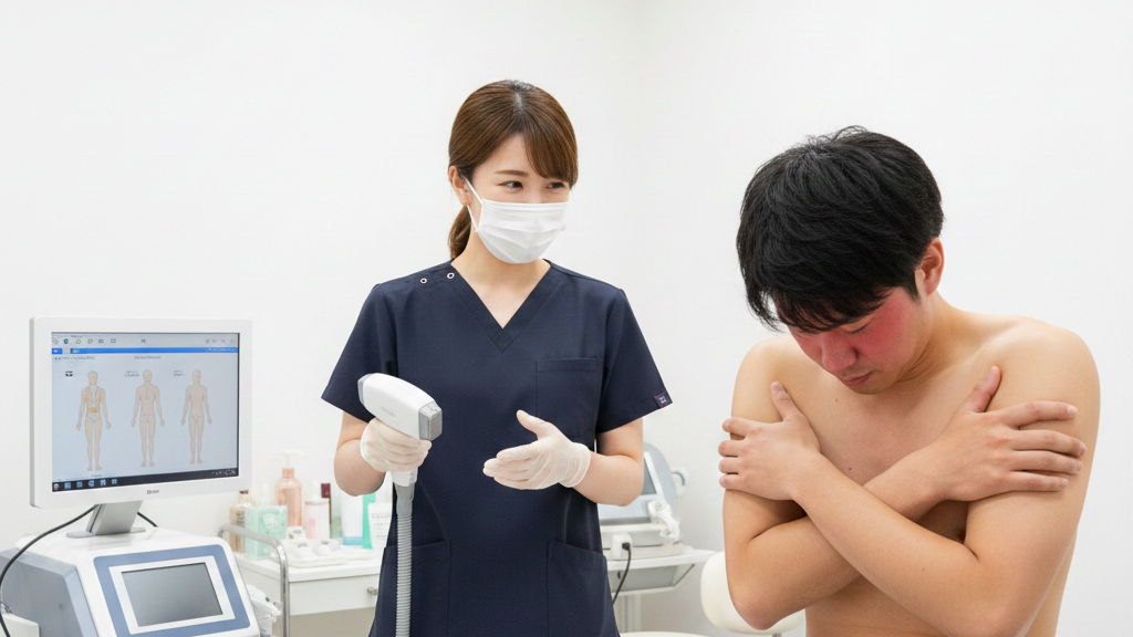 - 事前のシェービング:剃り残しがあると、毛の焦げる熱が肌に伝わりやすいので、徹底した自己処理が重要です。